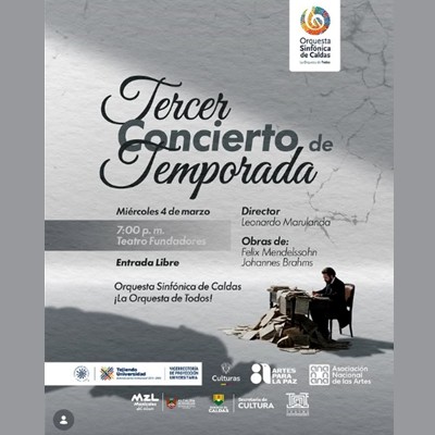La Orquesta Sinfónica de Caldas presenta su Tercer Concierto de Temporada, una noche dedicada a la grandeza y sensibilidad de Felix Mendelssohn y Johannes Brahms.